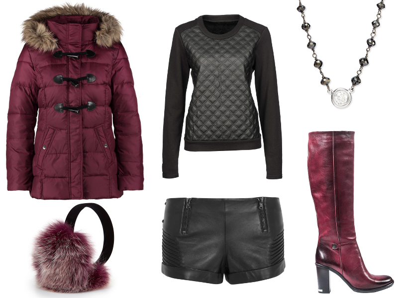Pamiętajmy jednak o dłuższej kurtce z kapturem, która zapewni nam ciepło. Do krótkich spodenek świetnie pasują karminowe długie kozaki Carinii na stabilnym słupku, z przyciemnianym noskiem i piętą. Modny teraz długi naszyjnik i futrzane nauszniki dopełnią tego nowoczesnego wyglądu.