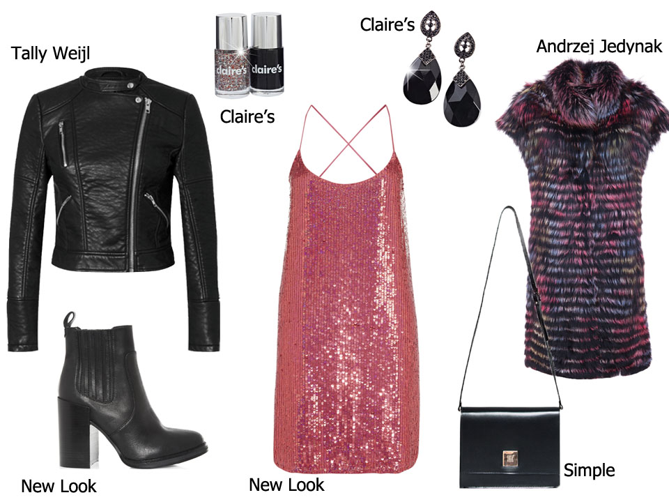 Być może walentynki masz ochotę spędzić na szalonej imprezie! W różowej cekinowej sukience na cienkich ramiączkach znajdziesz nie jednego amora! Ta błyszcząca kreacja nie potrzebuje ciężkiej biżuterii – skromne czarne kolczyki idealnie dopełnią zestaw. Efektownym okryciem na imprezę jest skórzana ramoneska i oversizeowa długa kamizelka – dzięki nim zachowasz ciepło i dobry styl! Wygodne botki na obcasie i niewielka torebka pozwolą Ci bawić się do białego rana!