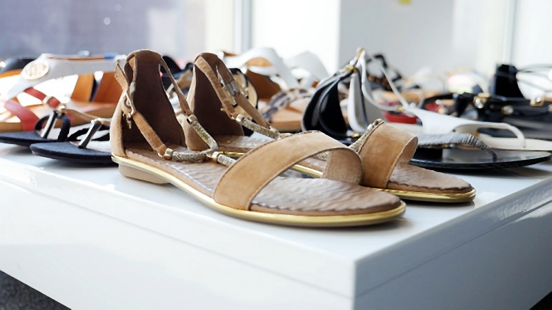 Goście mieli okazję podziwiać bogactwo modeli sandałów, zarówno finezyjnych na wysokim obcasie, zapinanych wokół kostki albo wykonanych z ? lejących się? skór w kontrastowych kolorach, jak i tych najbardziej pożądanych w okresie urlopowym, na płaskim obcasie, wygodnych i lekkich, z ozdobami w postaci dżetów lub złotych i srebrnych klamerek.