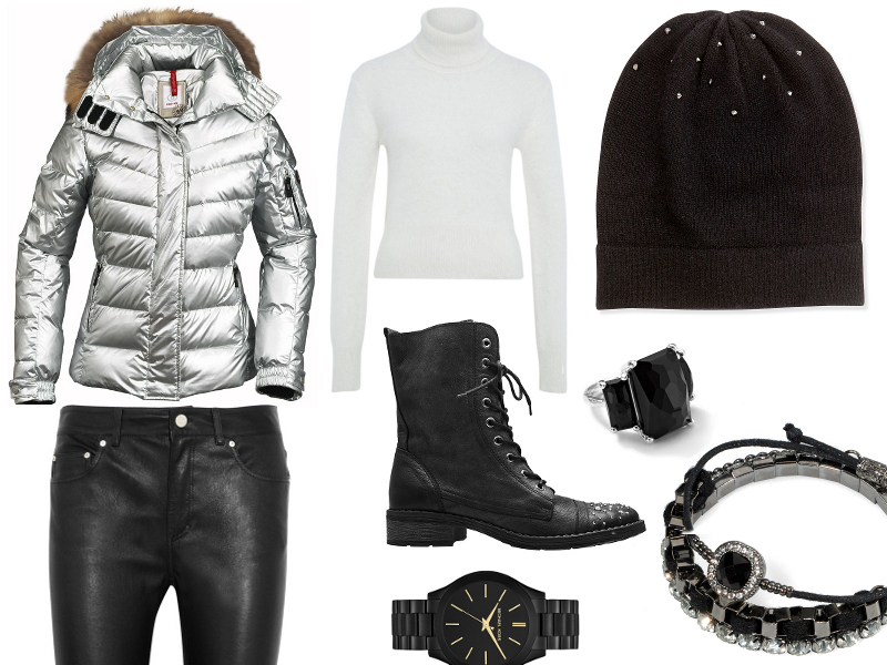 Długoterminowe prognozy pogody zapowiadają, że sylwestrowa noc będzie ciepła i deszczowa, jeśli więc decydujemy się na spędzenie Sylwestra pod chmurką, nie musimy ubierać się w ciepłe swetry, warto jednak pamiętać o parasolce. Dobrym rozwiązaniem będą czarne rurki, do których dobierzemy wygodną srebrną kurtkę, nie krępującą ruchów. Na miejskim bruku świetnie sprawdzą się sznurowane botki zdobione na noskach kryształkami Swarovskiego, które zapewnią nam niezbędny noworoczny błysk. Ciepła czapka zdobiona srebrnymi ćwiekami i masywna biżuteria dodadzą stylizacji rockowego charakteru.